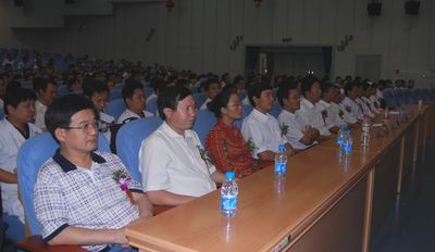 9月5日下午,省教育工会主办的“抗震救灾重建家园工人先锋号”授奖仪式暨报告会在合肥隆重举行,我校弋矶山医院赴川抗震救灾医疗队同时被中华全国总工会和中国科教文卫体工会授予“抗震救灾重建家园工人先锋号”称号。省教育工会和省教育厅领导宣布表彰决定,并代中华全国总工会和中国科教文卫体工会授“抗震救灾重建家园工人先锋号”旗。弋矶山医院院长、抗震救灾医疗队队长芮景同志作为受表彰集体代表作抗震救灾先进事迹报告。来自医疗卫生和教育战线的650余名代表参加了大会。