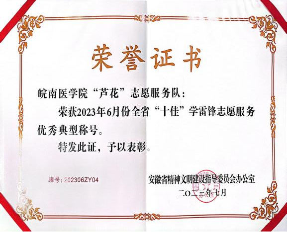 坚持健康教育与志愿服务相融合,在世界防治结核病日、世界艾滋病日、中国学生营养日等活动中逐渐形成了具有专业特色和较强影响力的党建和志愿服务品牌。学院共有4支志愿服务队,获得国家级“优秀团队”、国家级社会实践团队等50余项国家级荣誉,安徽省暑期“三下乡”社会实践优秀团队等100余项省级以上荣誉,其中1支志愿服务队获批国家级青春健康高校项目,1支志愿服务队连续10年获得安徽省百千万志愿者结核病防治知识传播活动大学生志愿者团体一等资助。