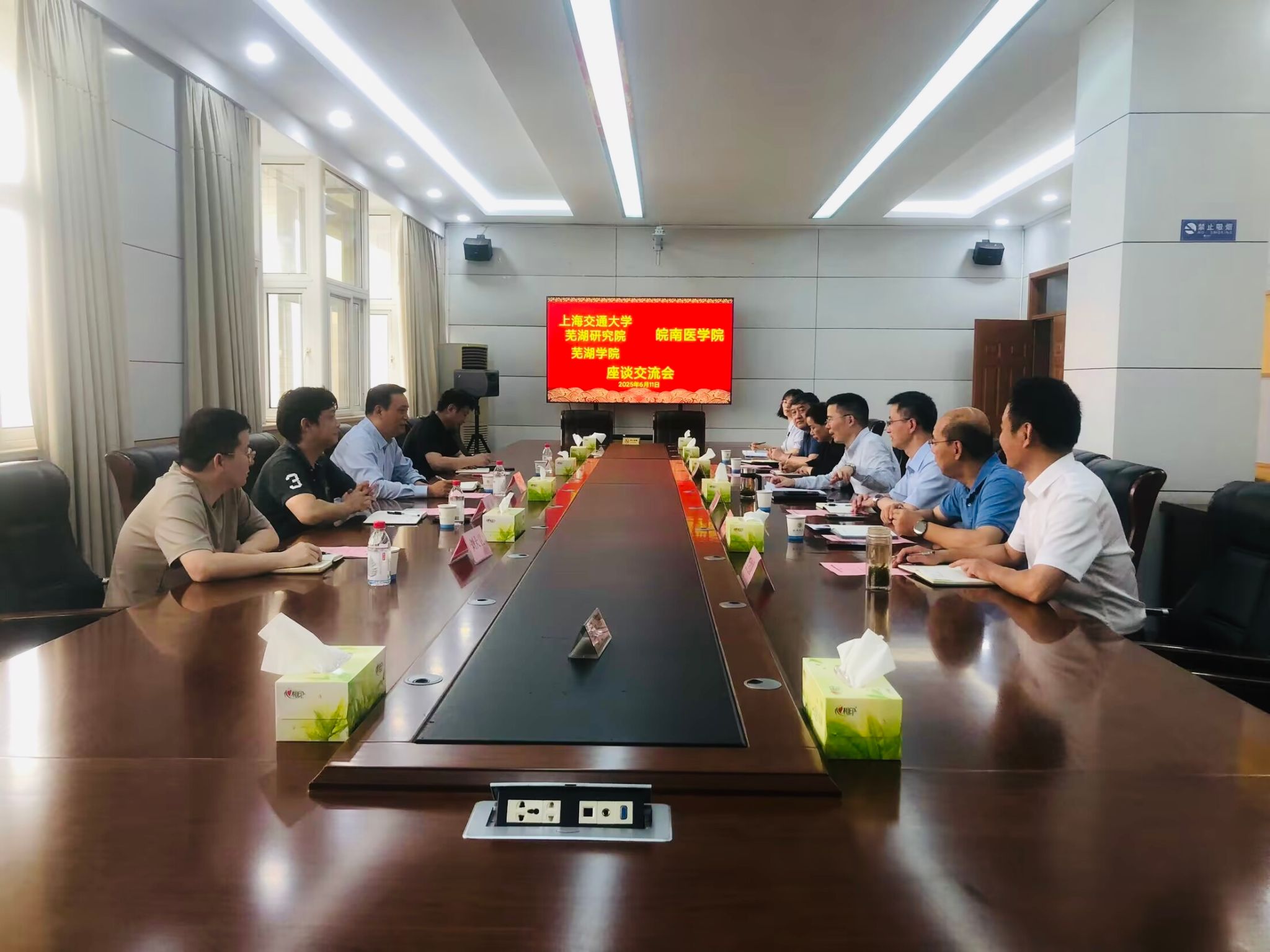 座谈交流会上,姚应水代表学校对各位来宾表示热烈欢迎。他介绍了我校近年来的发展情况,特别是在深化改革、学科建设、人才培养、科研创新等方面取得的显著成效。姚应水指出,上海交通大学芜湖研究院是上海交通大学与芜湖市“牵手合作”的重要载体,希望能与上海交通大学芜湖研究院在医工医理交叉、科研探索、成果转化等方面寻找合作的契合点,建立合作机制、搭建合作平台,推动互利共赢,共同为芜湖市乃至全省卫生健康事业的发展贡献更多智慧和力量。