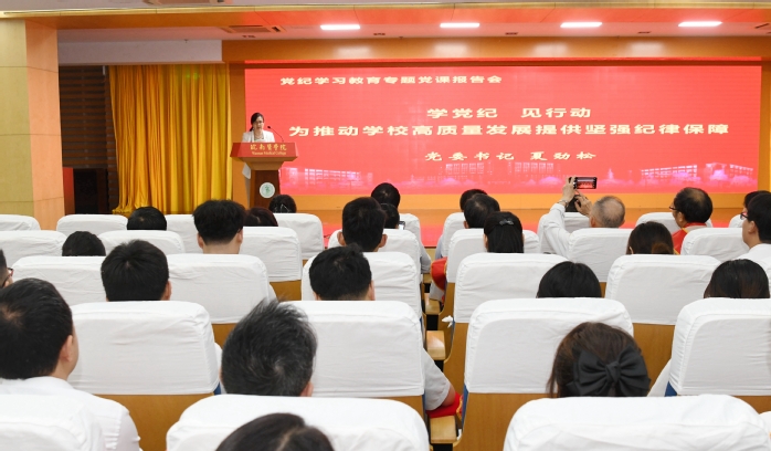 为进一步推进党纪学习教育走深走实,6月28日下午,学校在图书信息楼三楼报告厅举行庆祝中国共产党成立103周年表彰大会暨党纪学习教育专题党课报告会。党委书记夏劲松以“学党纪 见行动 为推动学校高质量发展提供坚强纪律保障”为题,讲授党纪学习教育专题党课。